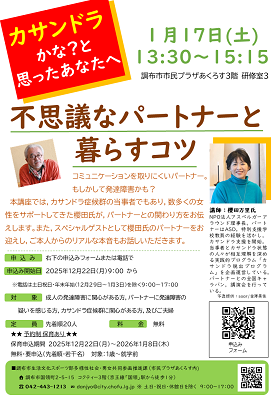 本講座では,カサンドラ症候群の当事者でもあり,数多くの方をサポートしてきた櫻田氏が,パートナーとの関わり方をお伝えします。また,スペシャルゲストとして櫻田氏のパートナーをお迎えし,ご本人からのリアルな本音もお話しいただきます。